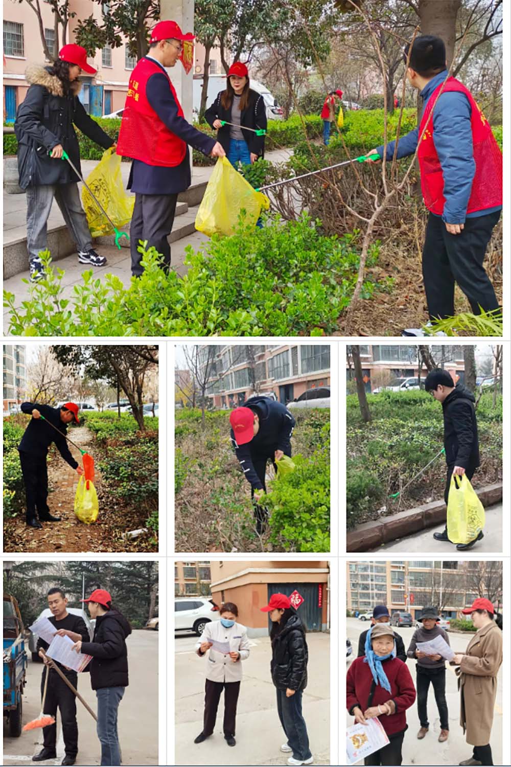 活动中,各支部党员分工协作,互相配合,用“志愿红”擦亮为民底色,发扬不怕脏、不怕累、不怕苦的精神,手持扫帚、捡拾器等工具,有的清理绿化带中的杂物,有的清扫道路、捡拾烟头,有的到楼道内整治乱堆乱放的杂物、铲除小广告,还对乱扔废弃物等不文明行为进行了劝阻。同时,为践行社会主义核心价值观,提升广大居民树立“诚信文明、从我做起、从点滴做起、从现在做起”的理念,党员还向居民分发宣传单页、宣讲诚实守信与文明知识,引导广大居民争做“诚信临沂”的倡导者、传播者、践行者,为文明城市创建增光添彩。